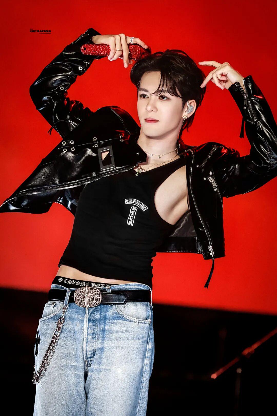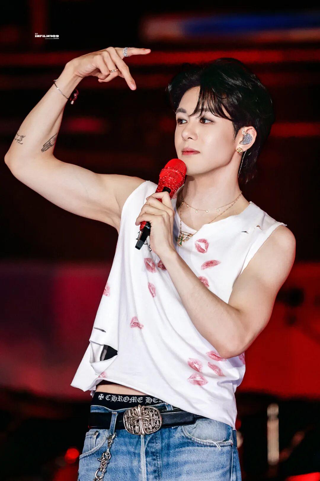 DAY2的朋克烟熏妆一键拉满舞台张力,修身皮衣内搭黑背心释放不羁野性翻倍赚,回归简约的白背心在吻痕点缀下拿捏心动狙击。