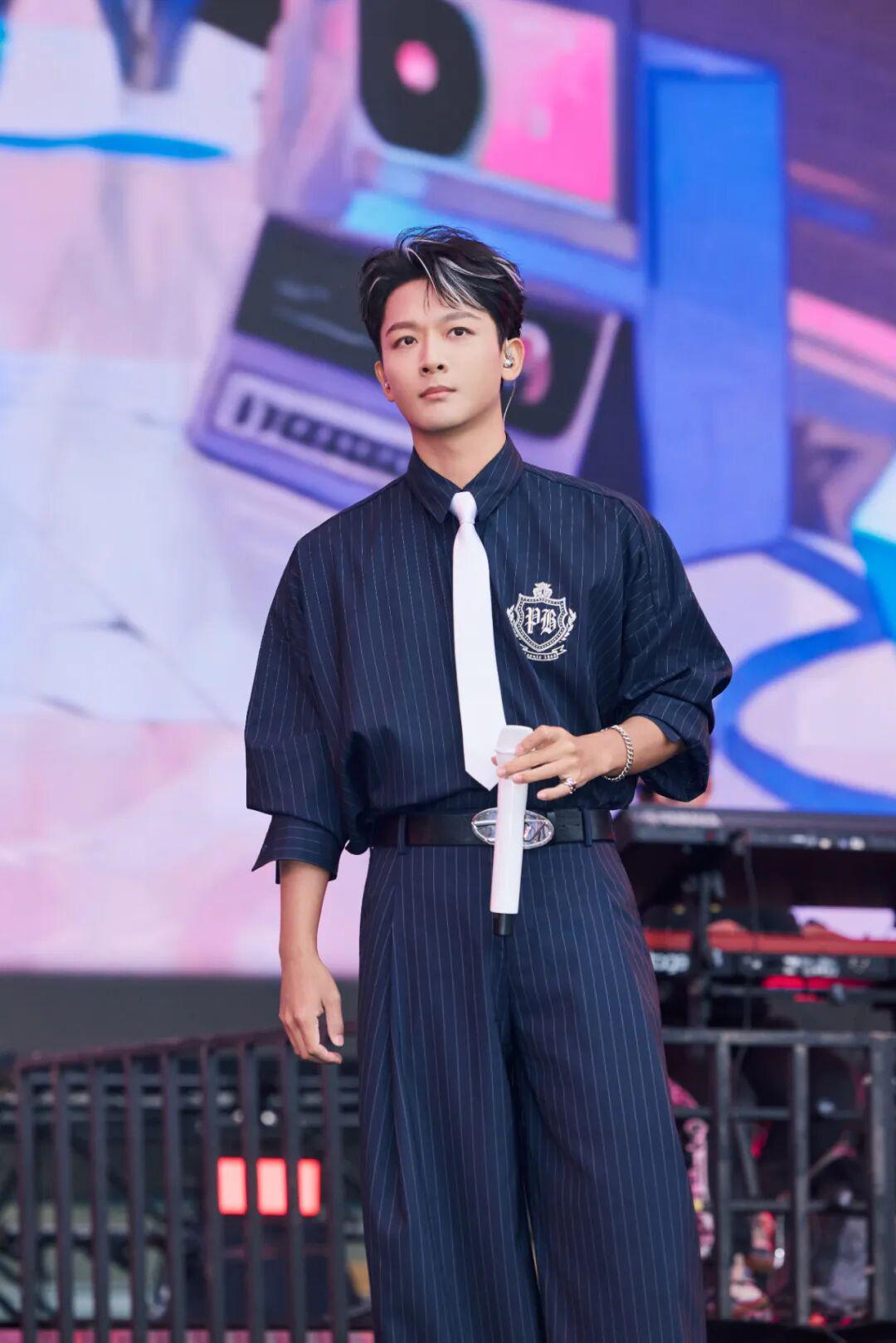 两场音乐节的造型也主打一个差异化,首日的黑色条纹套装搭配金属扣腰带低调凸显挺拔身形,白色挑染与白色领带相呼应,以个性点缀提亮暗调造型。