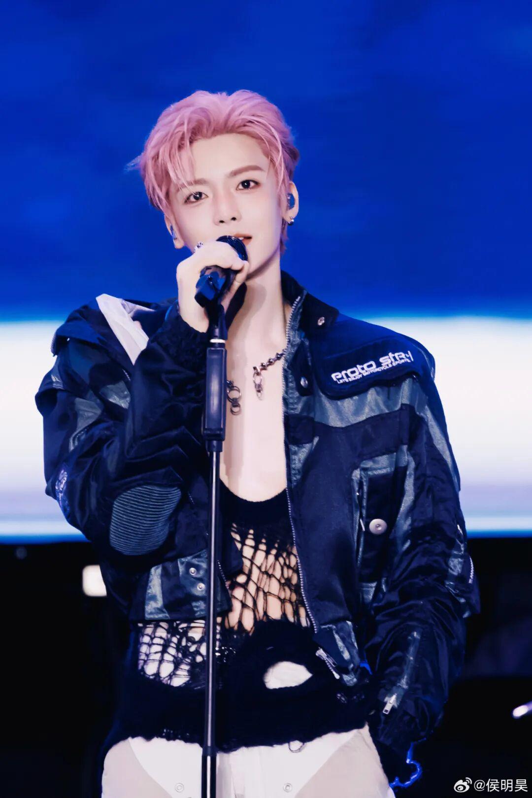 首秀舞台的粉发+微醺妆已经让人看得迷糊了,再来件机车夹克搭配镂空网眼背心,超低胸开叉和超大网眼露肤度完全没把观众当外人,小猫哥这是真·火力全开了!