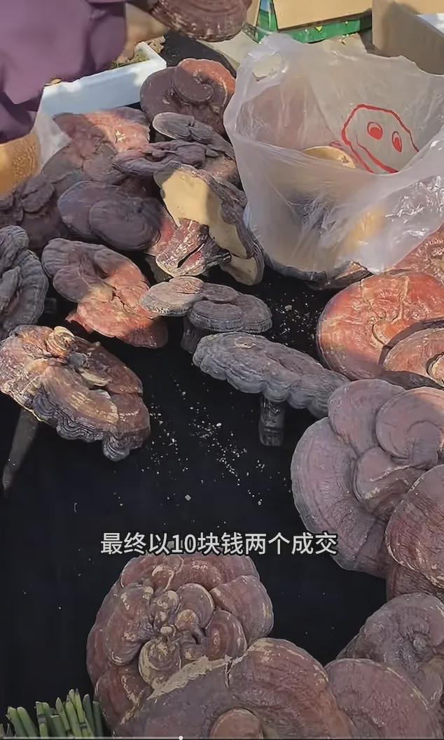 那些山林珍品绝对能让人大开眼界。除了卖蘑菇、榛子的普通摊位,灵芝和人参都能非常随性地摆在地上售卖。摊主报价的语气平淡得像在讨论今天的天气。有网友在东北10块钱买了2个灵芝,看得评论区的网友手机都要裂开了。