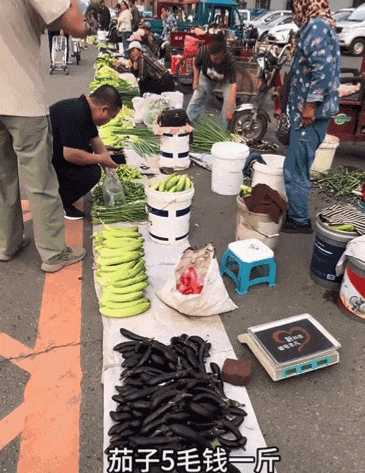 五毛钱一斤的茄子、两块钱一斤的豆角、十块钱一袋的土豆,个个实在,沉甸甸地传递着“家底儿”的厚度。这种摆放方式其实本身就是一种宣言:咱卖的是实实在在的滋味,不是花里胡哨的包装。